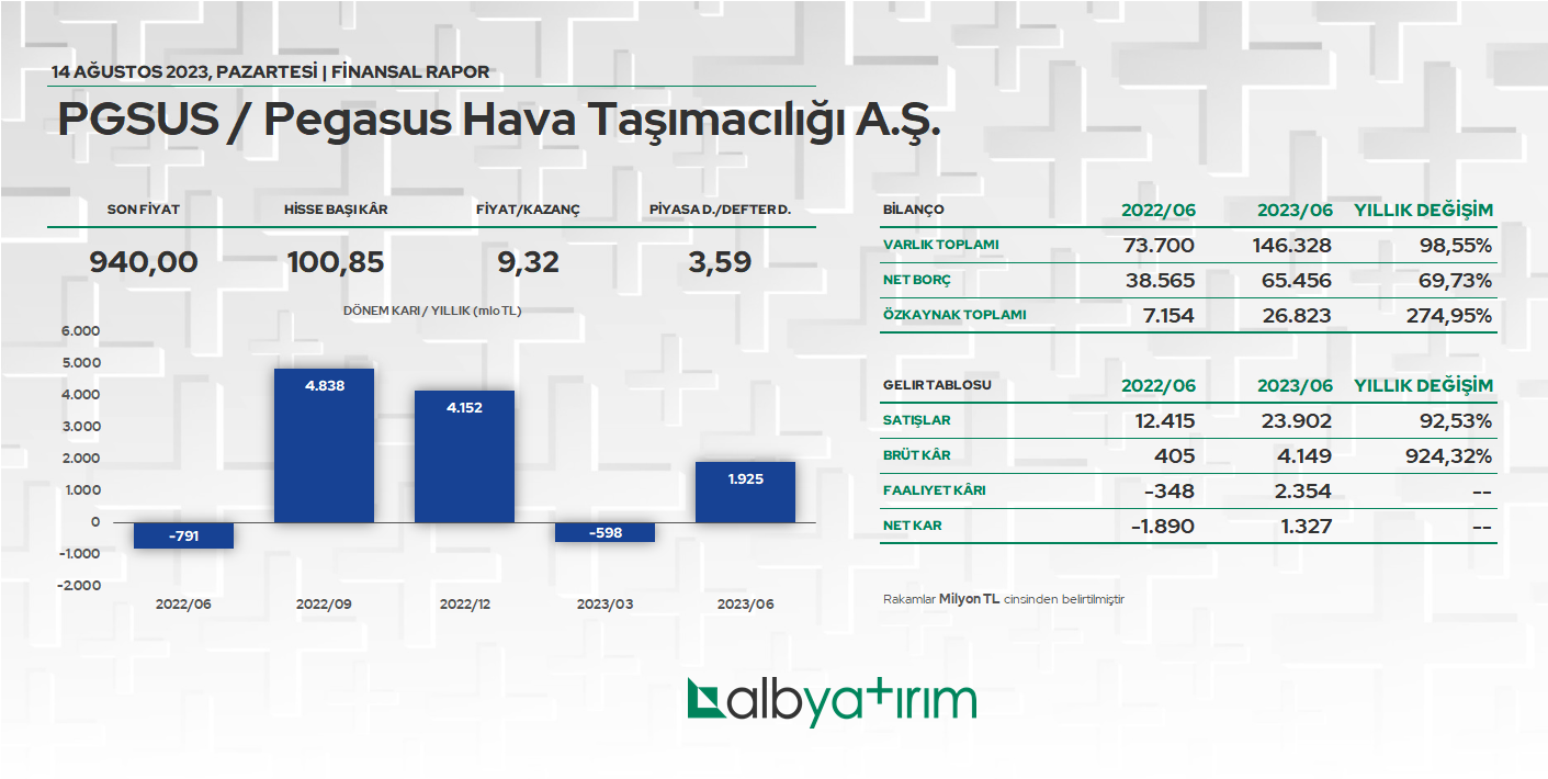 Pegasus Hava Taşımacılığı A.Ş. 2023 2. Çeyrek Finansal Sonuçları