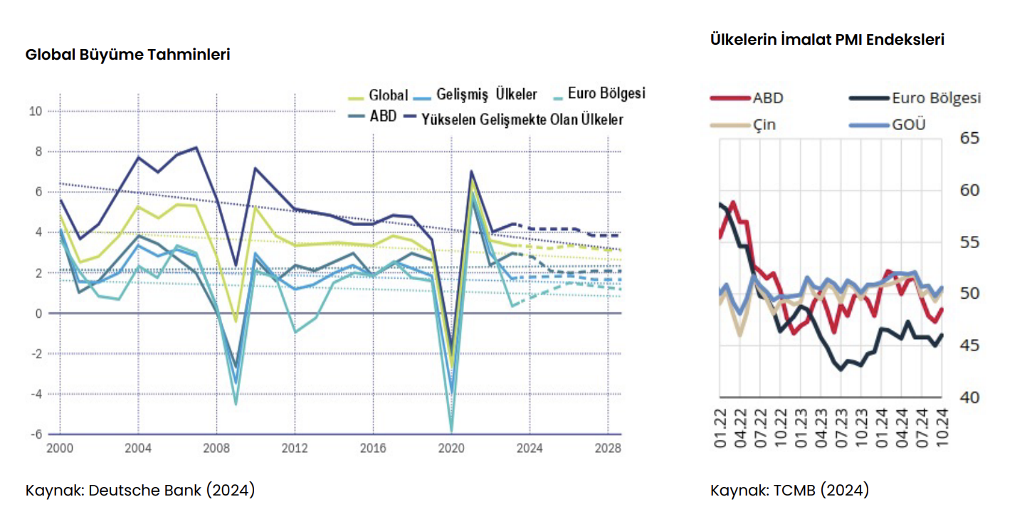 Küresel büyüme Çin’deki faaliyet hızının artması ve ABD'deki reel GSYİH büyümesinin beklenenden daha güçlü olmasıyla, bu yılın üçüncü çeyreğinde hafif bir artış gösterdi. Üretimdeki geniş tabanlı bir zayıflığa rağmen gelen veriler, ABD'deki güçlü ekonomik veriler ile Çin ve İngiltere’deki mali destekle güçlenen küresel büyümenin 2024'ün dördüncü çeyreğinde güçlü kalacağını gösteriyor. Ancak Orta Doğu'daki jeopolitik gerginlikler, Ukrayna'daki savaş, Çin gayrimenkul piyasasındaki devam eden zayıflık ve bir sonraki ABD yönetiminin daha içe dönük olma olasılığı, küresel büyüme ivmesinin kırılgan olmaya devam ettiğini gösteriyor.