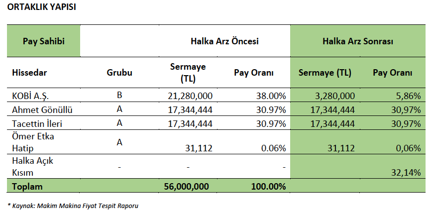 Halka arz işlemi çerçevesinde, KOBİ A.Ş.’nin sahip olduğu %32,14’lük ortaklık payına karşılık gelen 18.000.000 adet payın halka arz edilmesi öngörülmektedir. Söz konusu halka arz neticesinde Şirket’e herhangi bir nakit girişi olmayacaktır. Halka arzdan elde edilecek gelir KOBİ A.Ş.’nin tasarrufunda bulunacaktır.