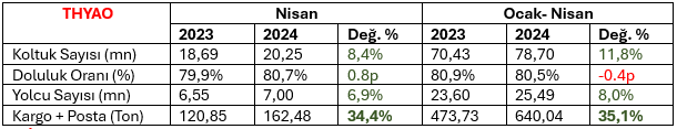 Türk Hava Yolları A.O. (THYAO) Nisan 2024 Hava Trafik Verileri