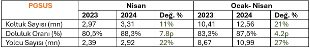 Pegasus Hava Taşımacılığı A.Ş. (PGSUS) Nisan 2024 Hava Trafik Verileri