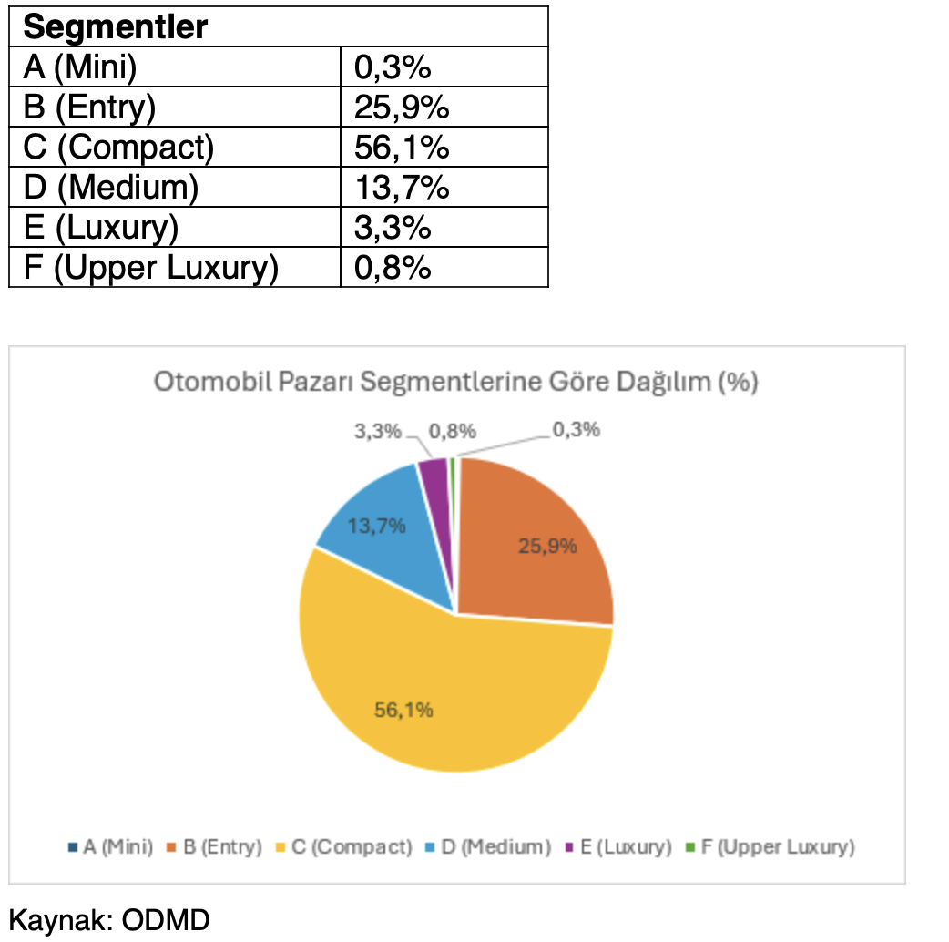 - Pazarın %82,6’sını vergi oranları düşük olan A, B ve C segmentlerindeki araçlar oluşurken,