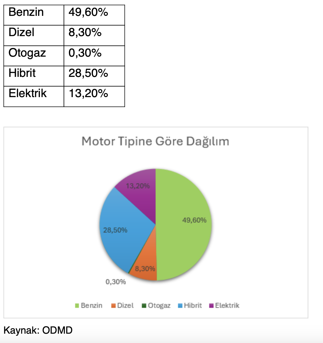 Otomobil Pazarı Motor Tipine Göre Dağılımı;