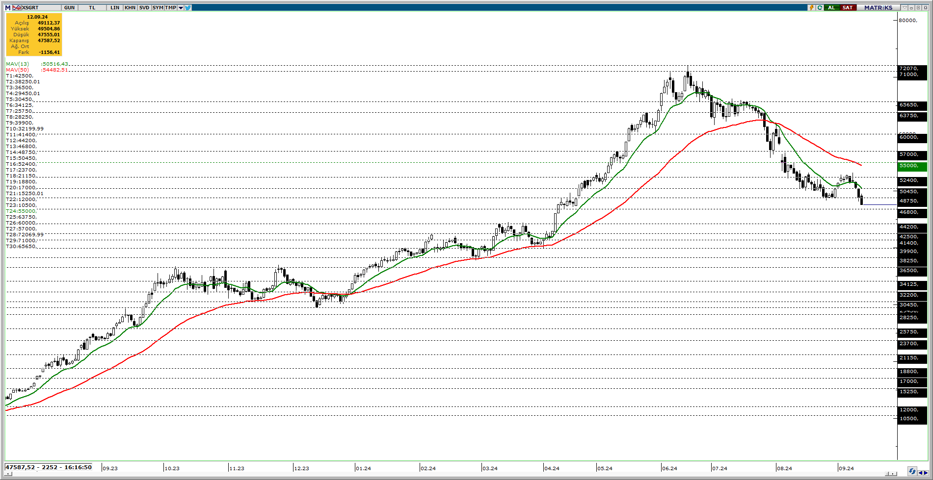 72000 seviyelerinden gördüğü baskı ile geri çekilmesini sürdüren Sigortacılık endeksi referans göstergeler olarak takip ettiğimiz 13 ve 50 günlük üssel hareketli ortalamalar altında fiyatlanmaya  devam ediyor. Hali hazırda endekste baskılanmanın devam etmesi durumunda 46800, 44200 ve 42500 seviyelerine doğru geri çekilme gözlenebilir. Aksi taktirde olası pozitif ivmelenmelerde ise tekrar 48750, 50450 ve 52400 seviyelerine hareket edebilir.