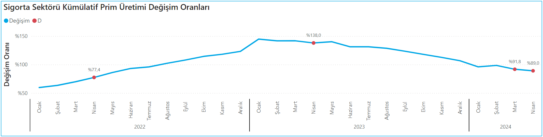 TSB sigorta sektörü verilerine göre; sektör 2024 yılının ilk dört ayında önceki yılın aynı dönemine göre prim üretiminde yüzde 89,0 oranında artış göstererek 258.47 Milyar TL hacme ulaştı. Bu oran 2023 yılının ilk dört ayında 2022 yılının aynı dönemine göre yüzde 138,0 oranında artış ile 136.73 Milyar TL olarak gerçekleşmişti.