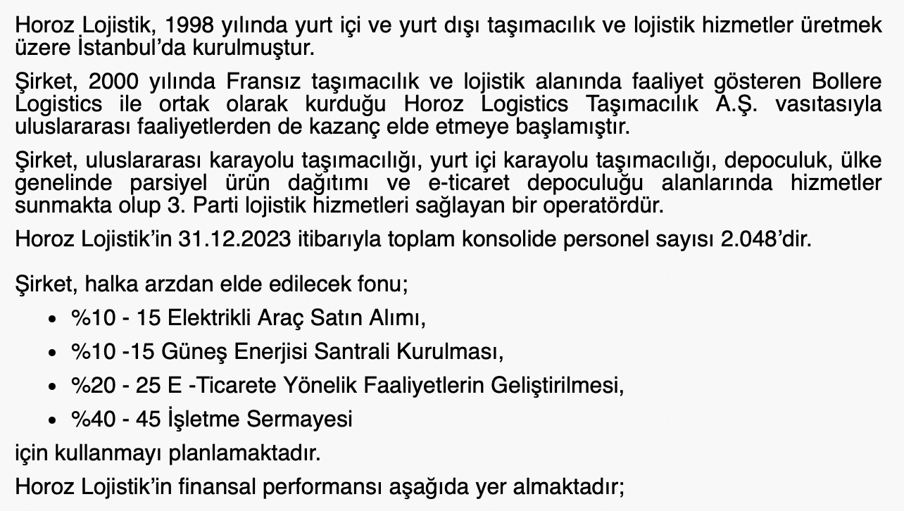 • Faaliyet Alanı: Horoz Lojistik, 1998 yılında yurt içi ve yurt dışı taşımacılık ve lojistik hizmetler üretmek üzere İstanbul’da kurulmuştur.