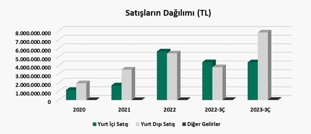 Yurt Dışı Satış | 1.951.738.489 | 3.534.720.921 | 5.420.462.750 | 3.820.919.157 | 7.850.276.129 |