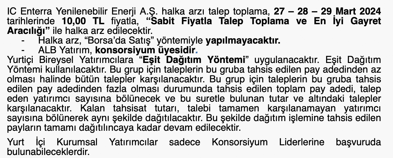 -          Halka arz, “Borsa’da Satış” yöntemiyle yapılmayacaktır.