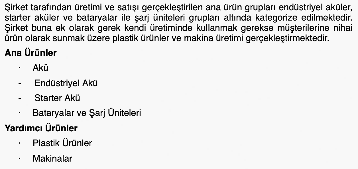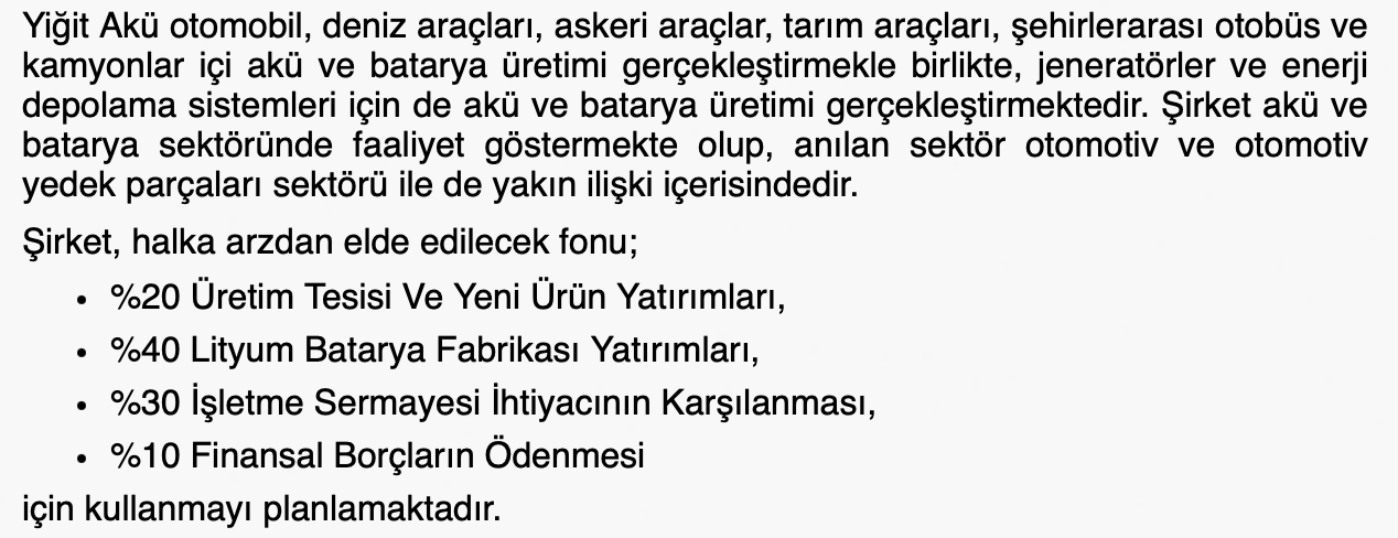 • Faaliyet Alanı: Otomotiv firmaları başta olmak üzere, endüstriyel ve savunma sanayine akü tedariki sağlayan Yiğit Akü, ileri teknoloji üretimi ve AR-GE çalışmaları ile sektördeki yeniliklere öncülük etmektedir.